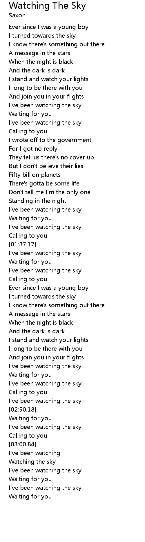 I've been watching the sky |