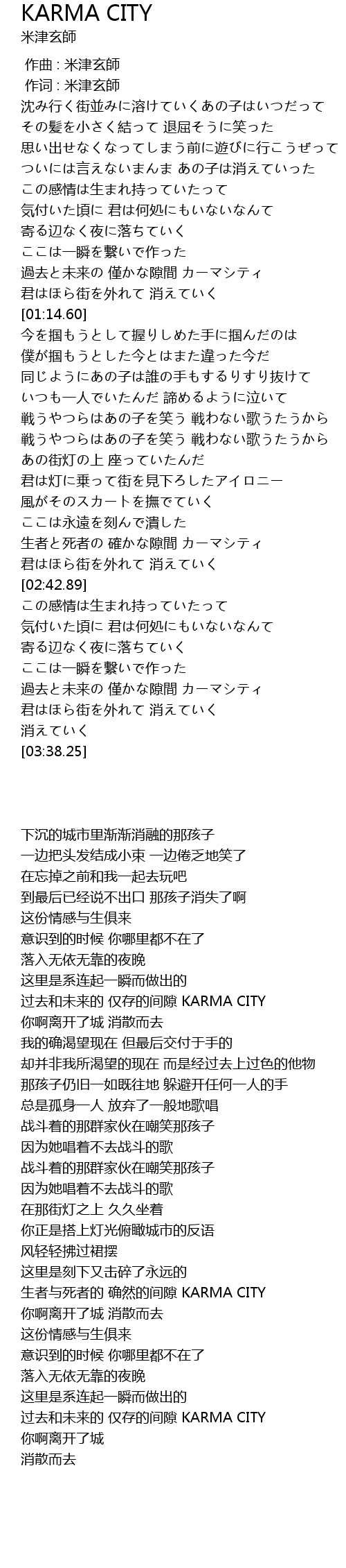 | [03:17.20] | 过去和未来的 仅存的间隙 KARMA CITY |