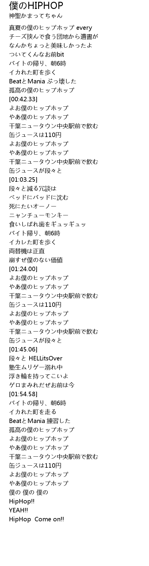 | [00:42.81] | よお僕のヒップホップ |