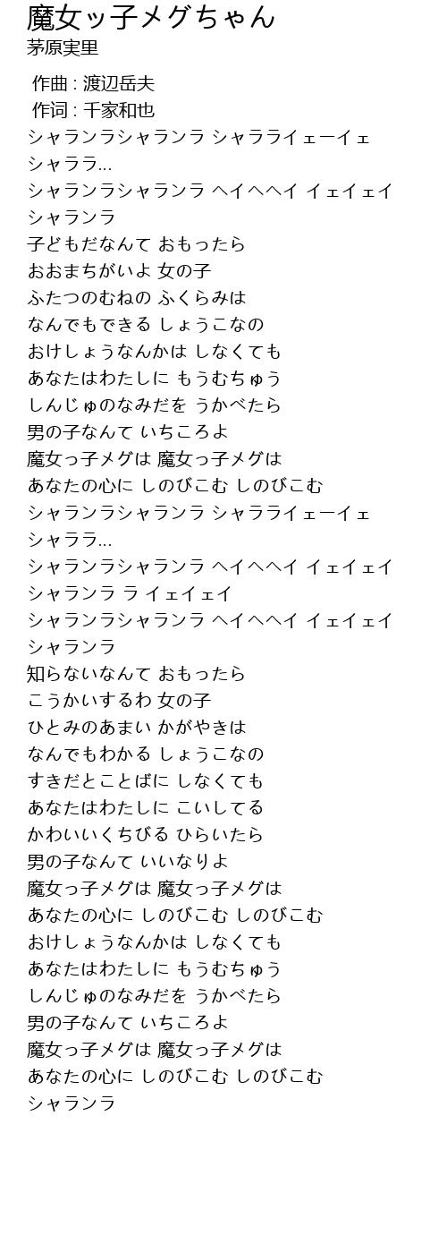 | [01:07.04] | 魔女っ子メグは 魔女っ子メグは |