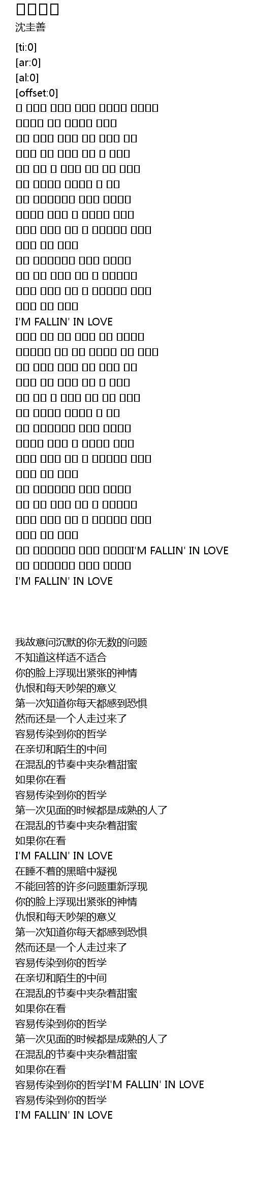 | [03:05.84] | 쉽게 전염되어오는 그대의 필로소피I'M FALLIN' IN LOVE |