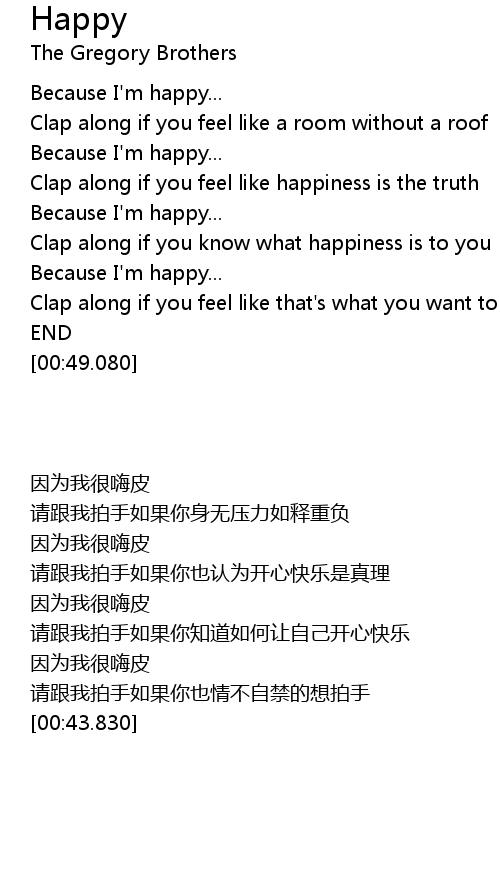 | [00:23.740] | Clap along if you know what happiness is to you |