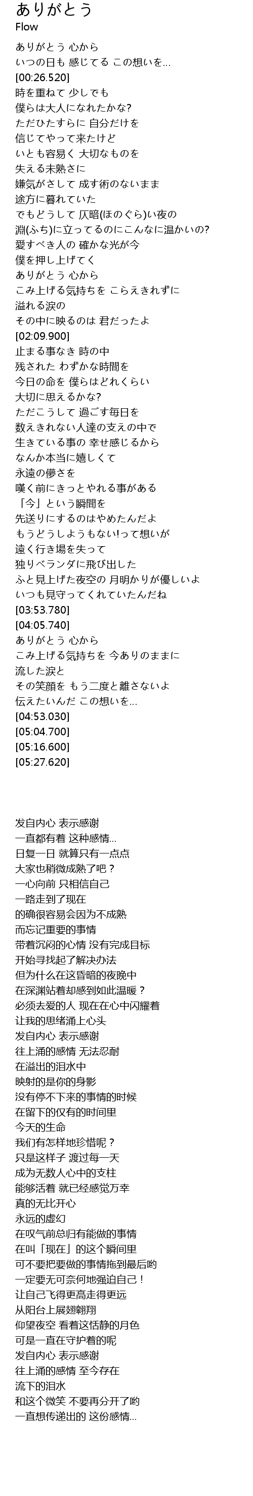 | [00:12.270] | ありがとう 心から |