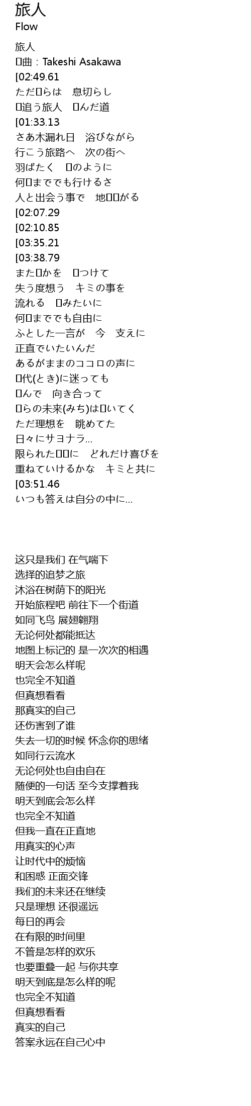 | [00:33.87] | �追う旅人 �んだ道 |