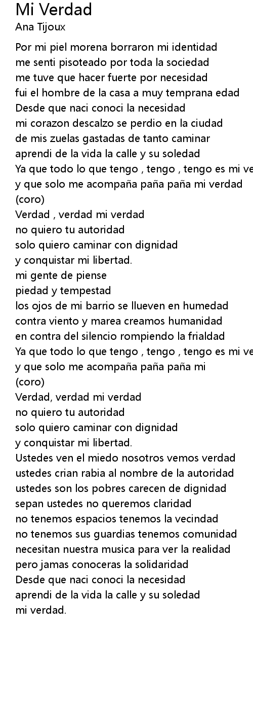 | Ya que todo lo que tengo , tengo , tengo es mi verdad | |