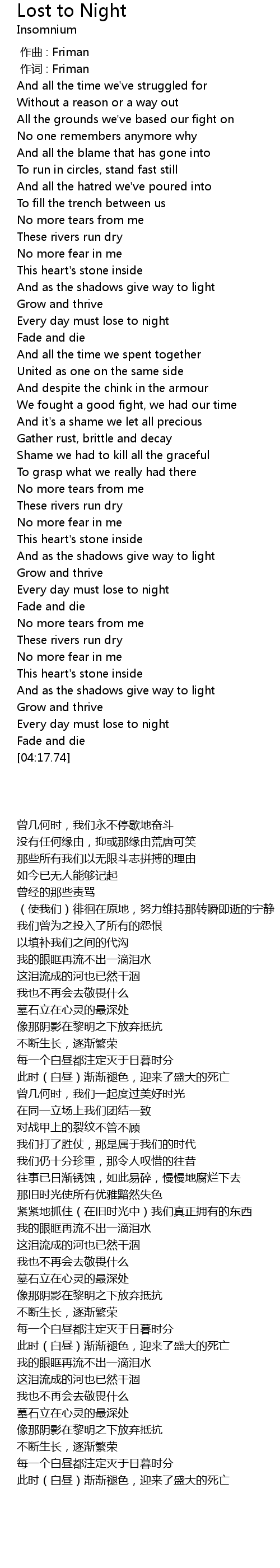 | [04:10.70] | Every day must lose to night |