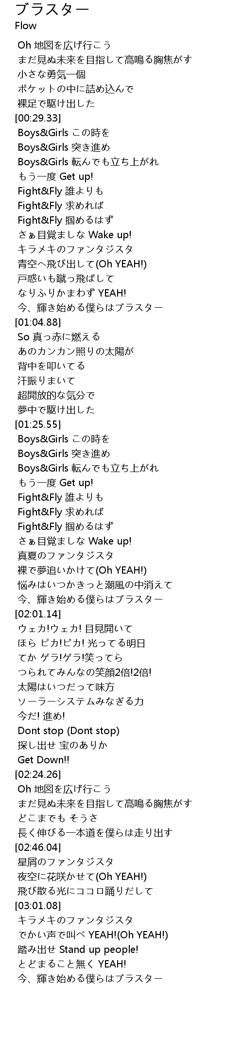 | [01:29.14] | Boys&Girls 突き進め |