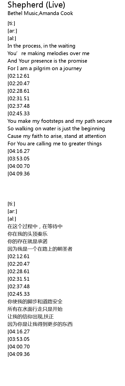 | [05:49.73][02:37.48][01:22.15] | Good Shepherd of my soul |