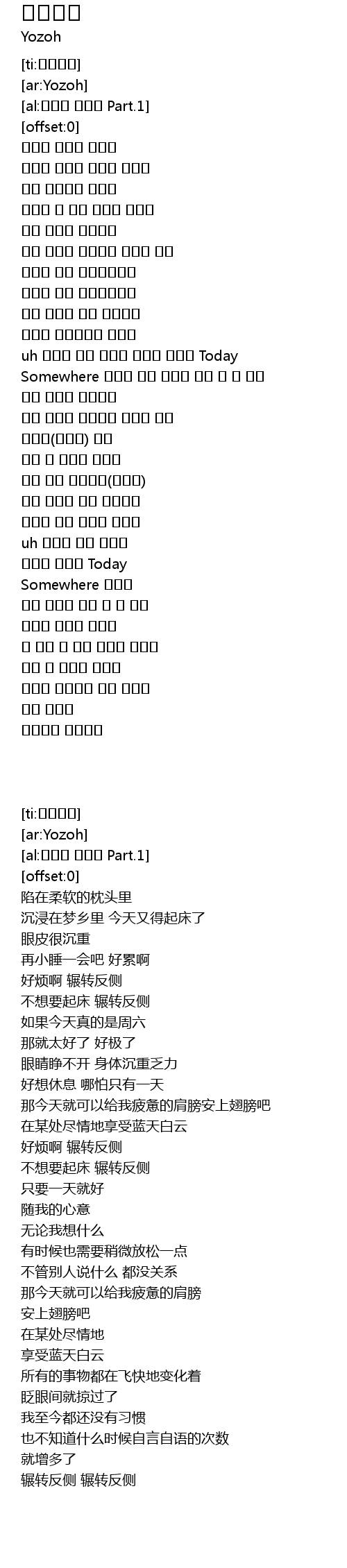 | [01:32.22] | Somewhere 구름을 파란 하늘을 맘껏 볼 수 있게 |
