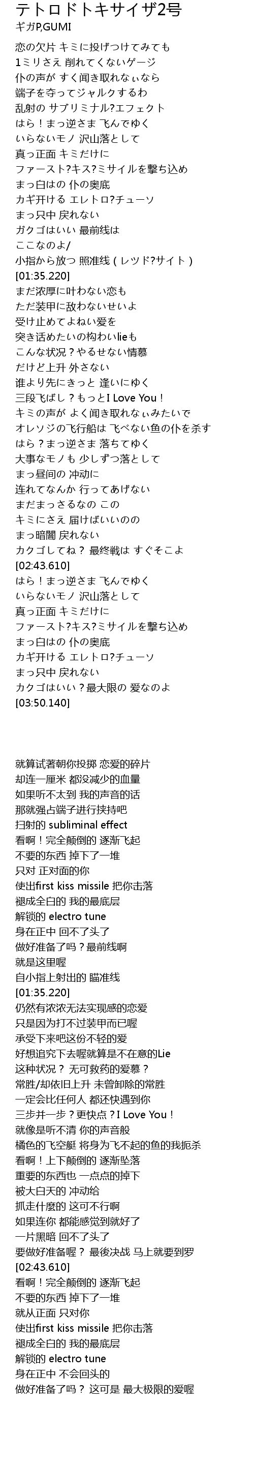 | [03:21.660] | ファースト?キス?ミサイルを撃ち込め |
