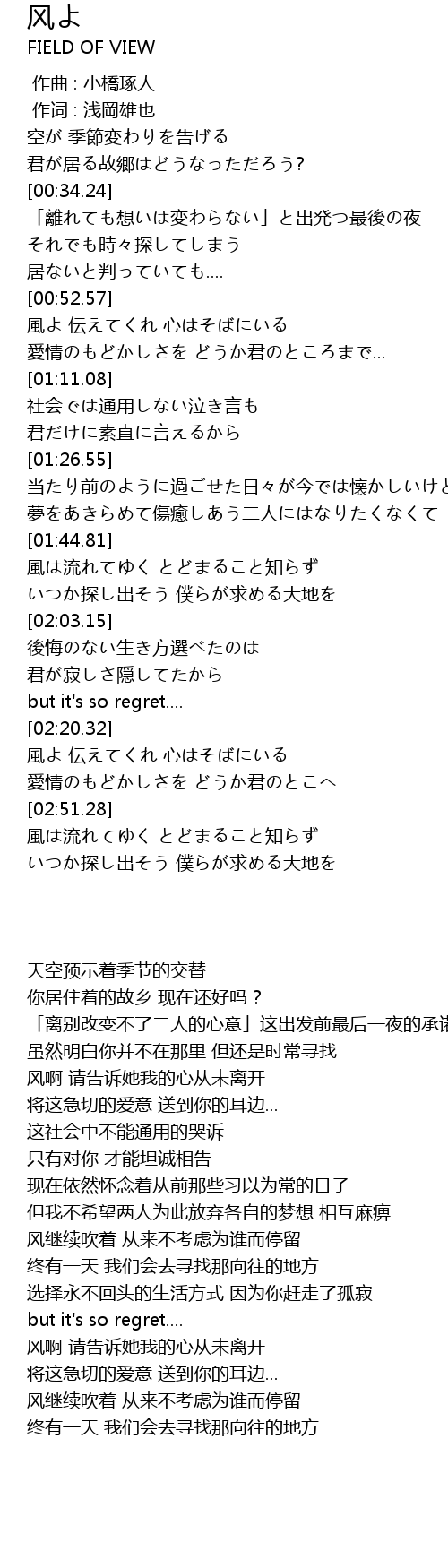 | [00:53.37] | 風よ 伝えてくれ 心はそばにいる |