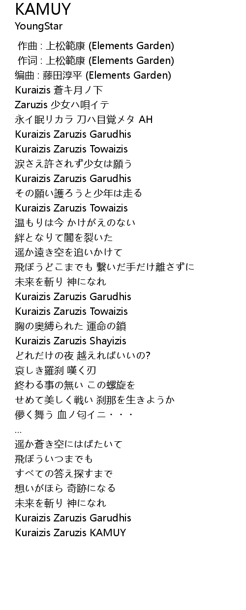 | [04:16.56] | Kuraizis Zaruzis KAMUY |