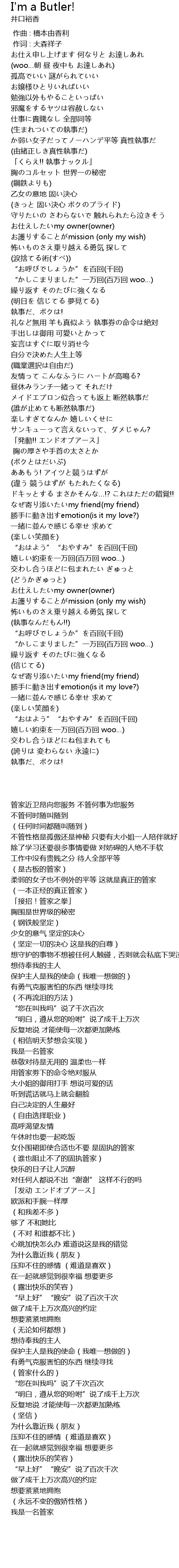 | [01:51.56] | メイドエプロン似合っても返上 断然執事だ |