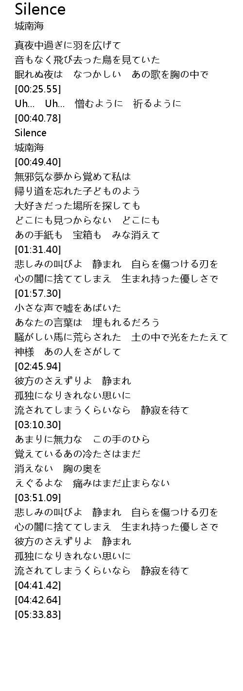 | [02:46.41] | 彼方のさえずりよ 静まれ |