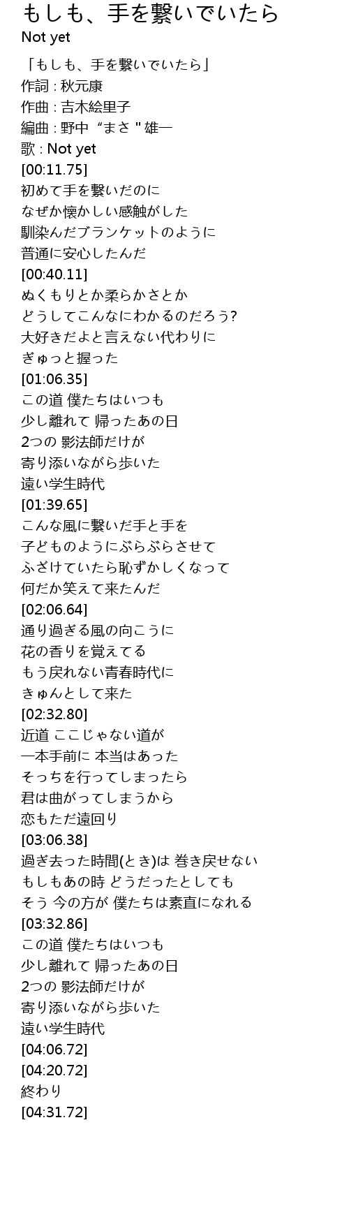 | [00:00.75] | 「もしも、手を繋いでいたら」 |