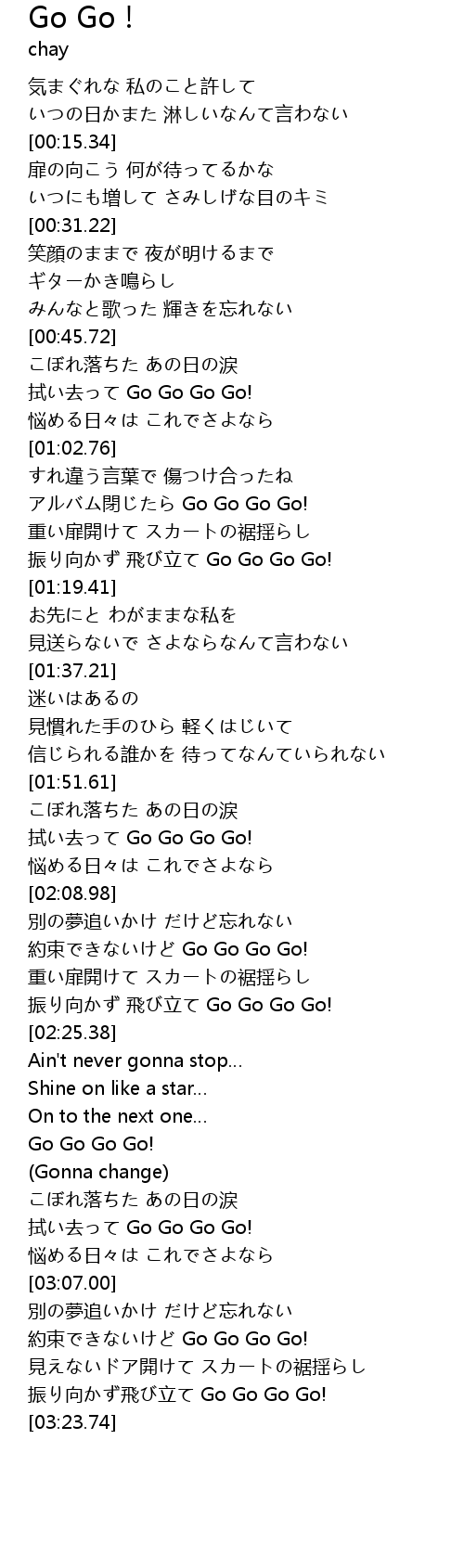 | [03:19.44] | 振り向かず飛び立て Go Go Go Go! |