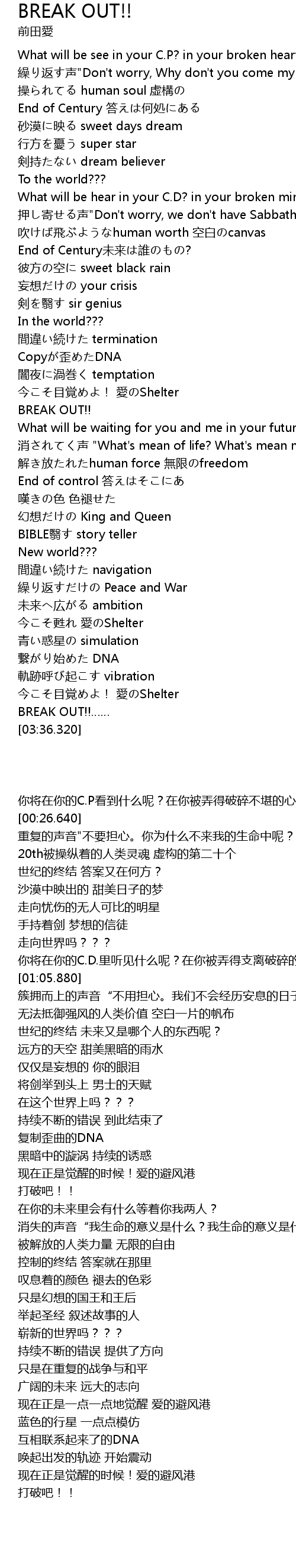 | [03:11.030] | BREAK OUT!! |