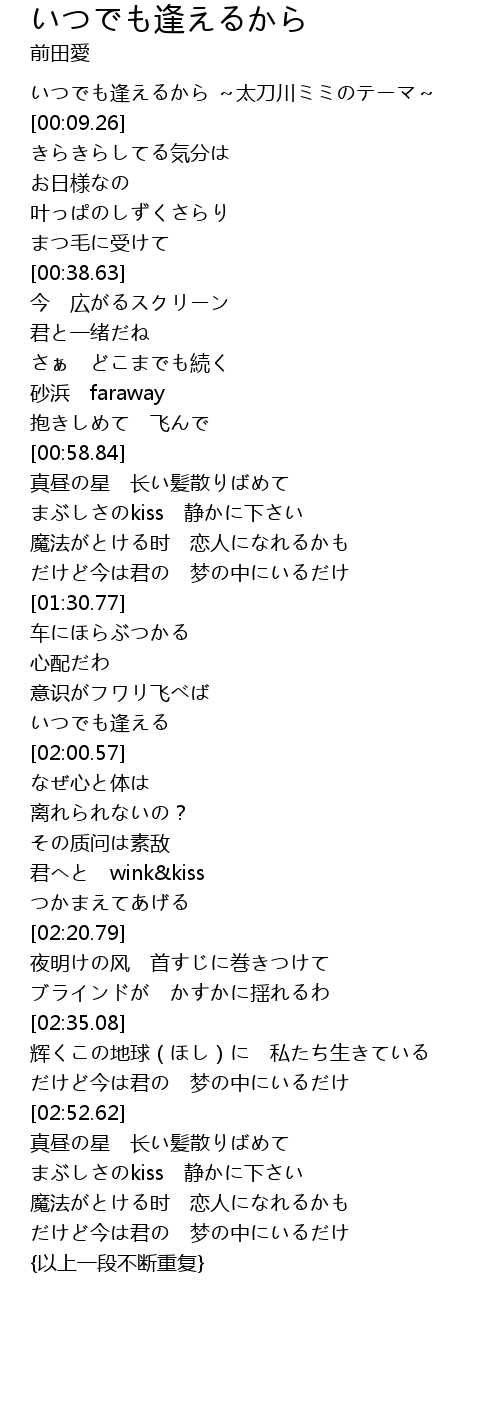 | [00:00.54] | いつでも逢えるから ~太刀川ミミのテーマ~ |