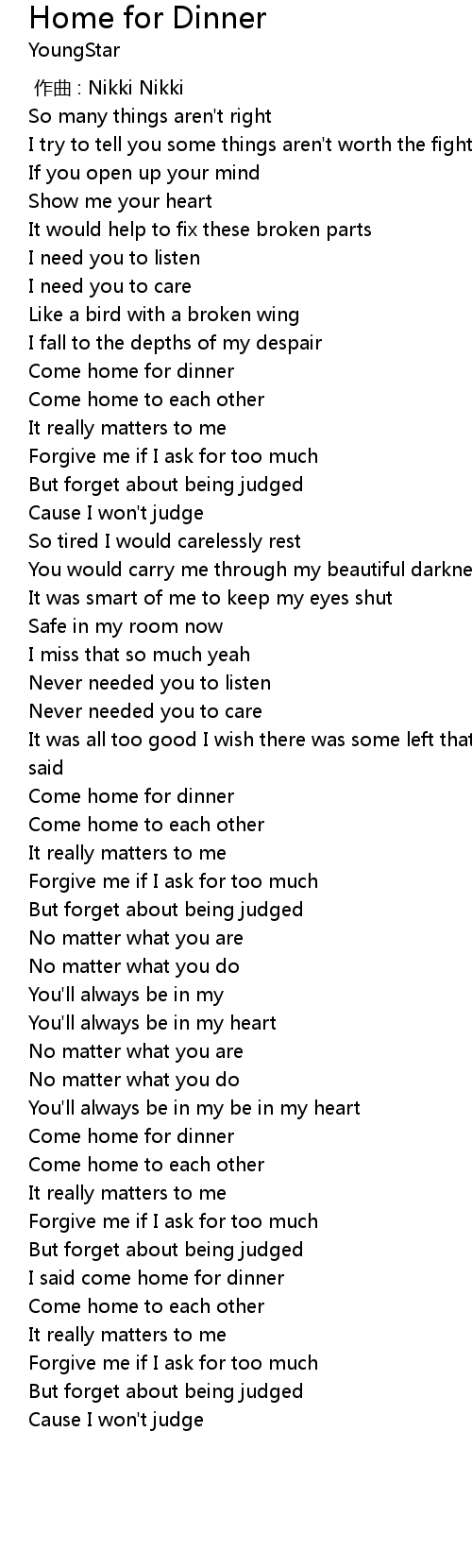 | [00:56.19] | Come home for dinner |