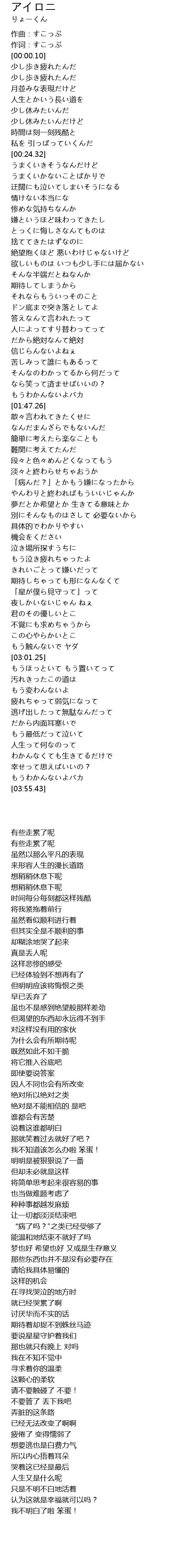 | [00:03.00] | 有些走累了呢 |