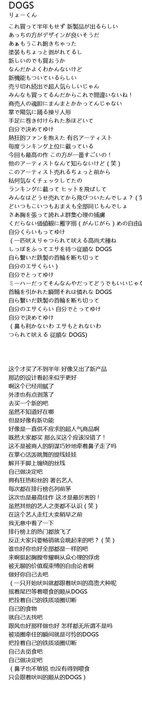 | [03:42.14] | (鼻子也不敏锐 也没有得到喂食 只会跟着吠叫的顺从的DOGS) |