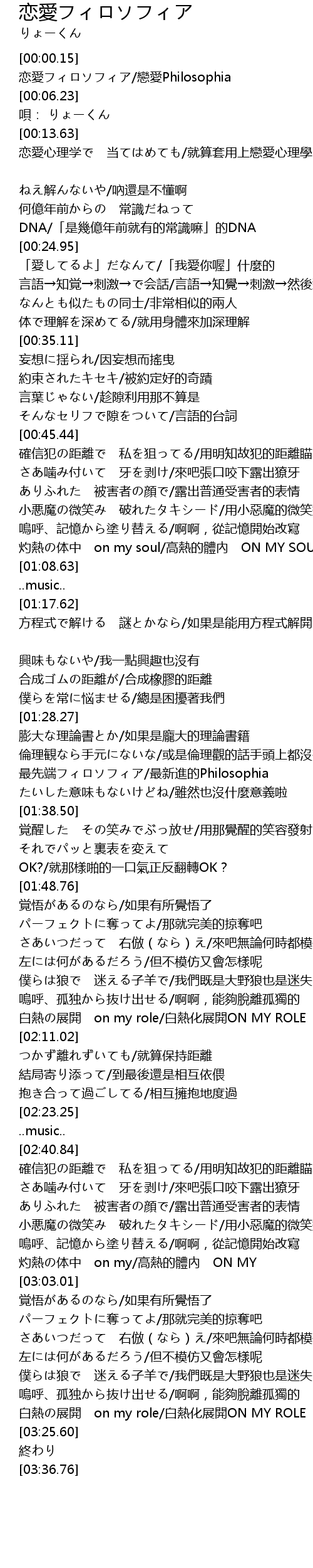 | [00:01.55] | 恋愛フィロソフィア/戀愛Philosophia |