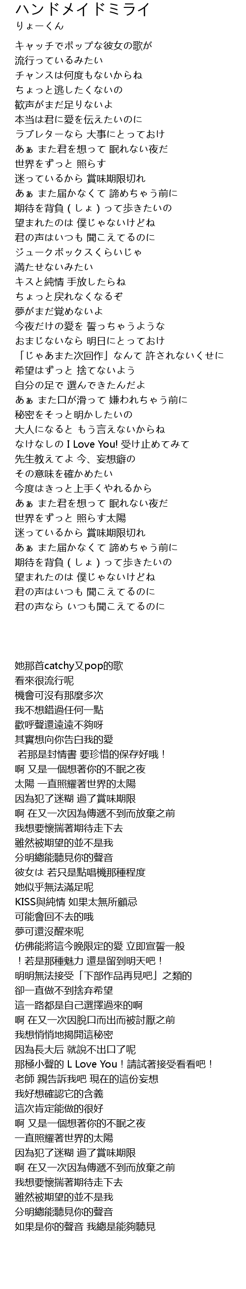 | [02:26.33] | なけなしの I Love You! 受け止めてみて |