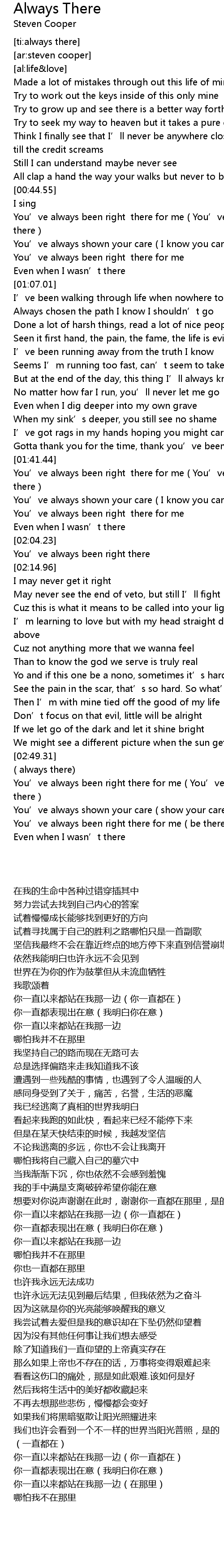 | [00:45.72] | You' ve always been right there for me You' ve always been right there |