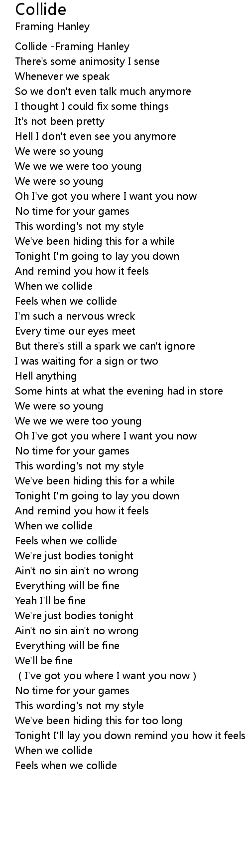 | [00:00.00] | Collide Framing Hanley |