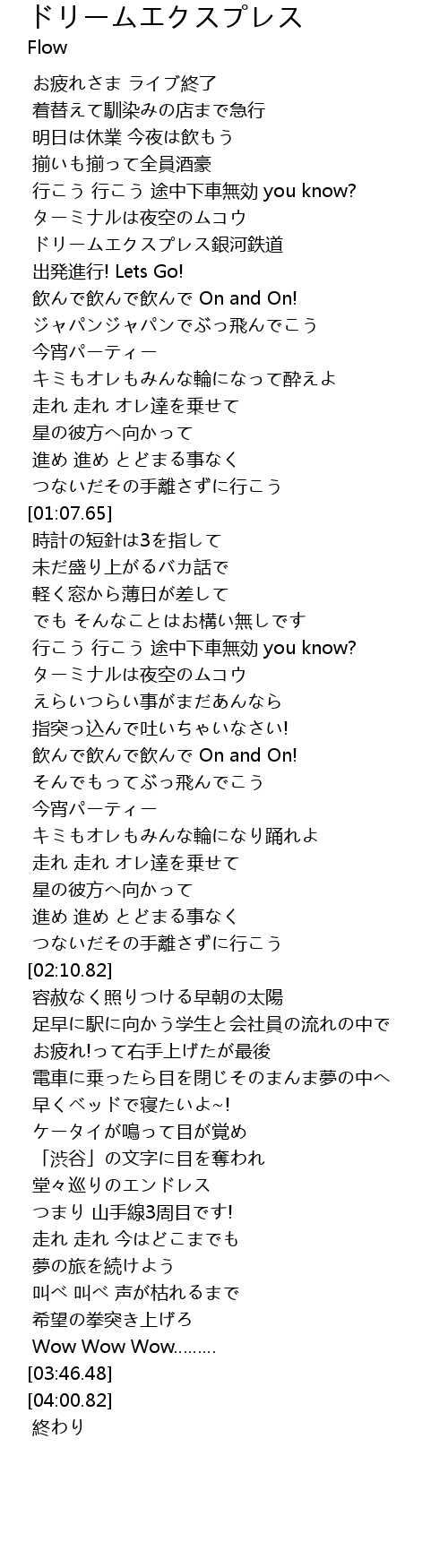 | [00:28.41] | ドリームエクスプレス銀河鉄道 |