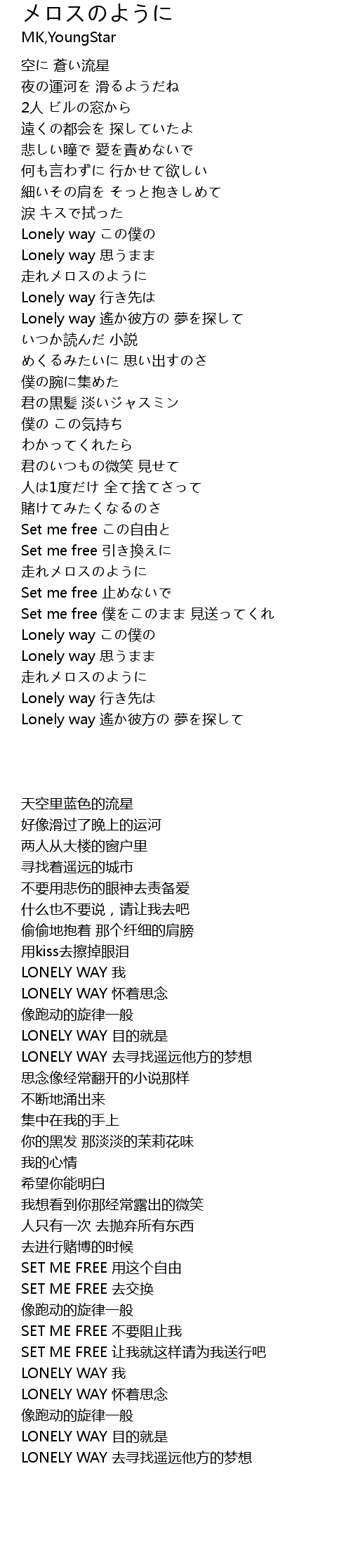 | [03:02.33] | Set me free 僕をこのまま 見送ってくれ |