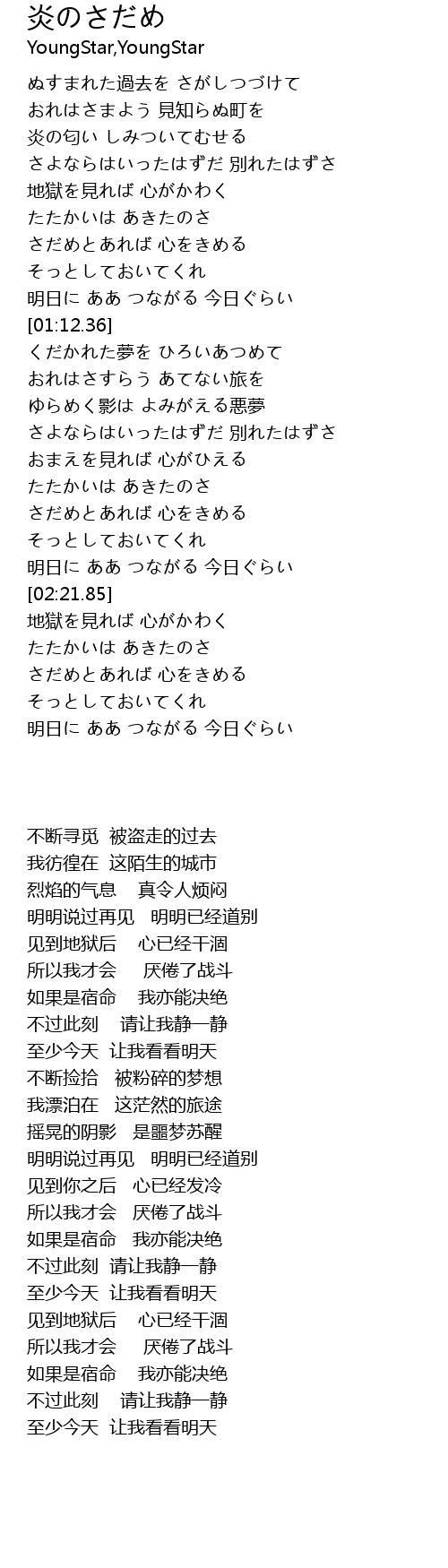 | [01:36.17] | ゆらめく影は よみがえる悪夢 |