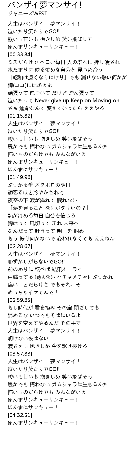 | [03:58.62] | 人生はバンザイ! 夢マンサイ! |