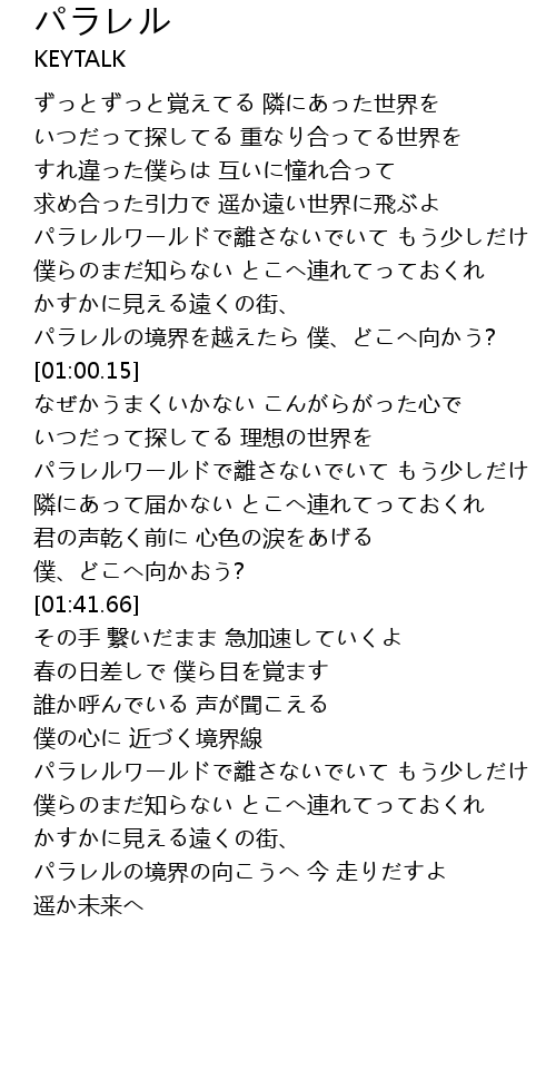 | [00:53.60] | パラレルの境界を越えたら 僕、どこへ向かう? |