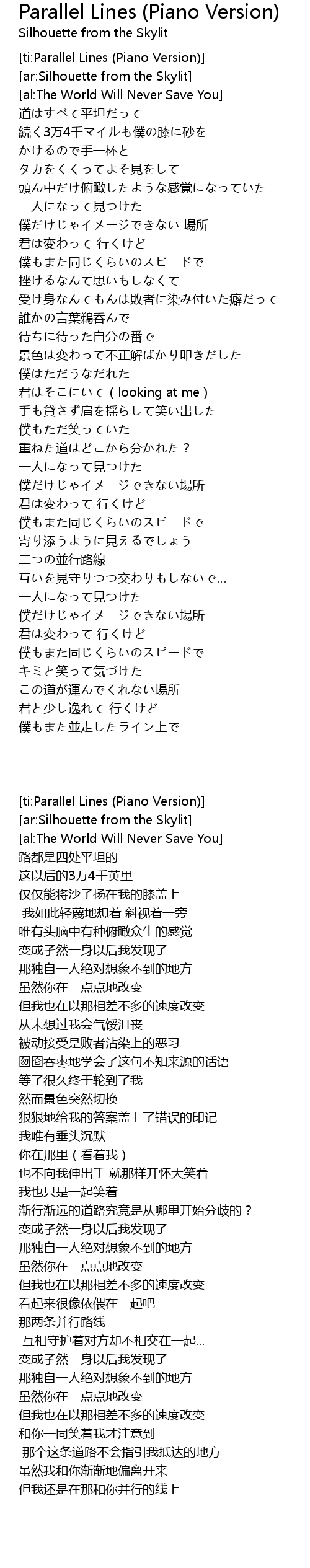 | [ti:Parallel Lines (Piano Version)] | |