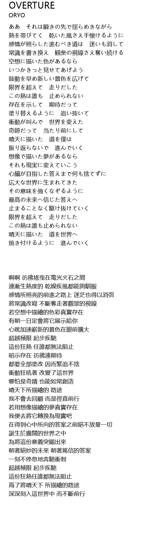 | [03:50.24] | 朝著絕妙的未來 朝著篤信的答案 |