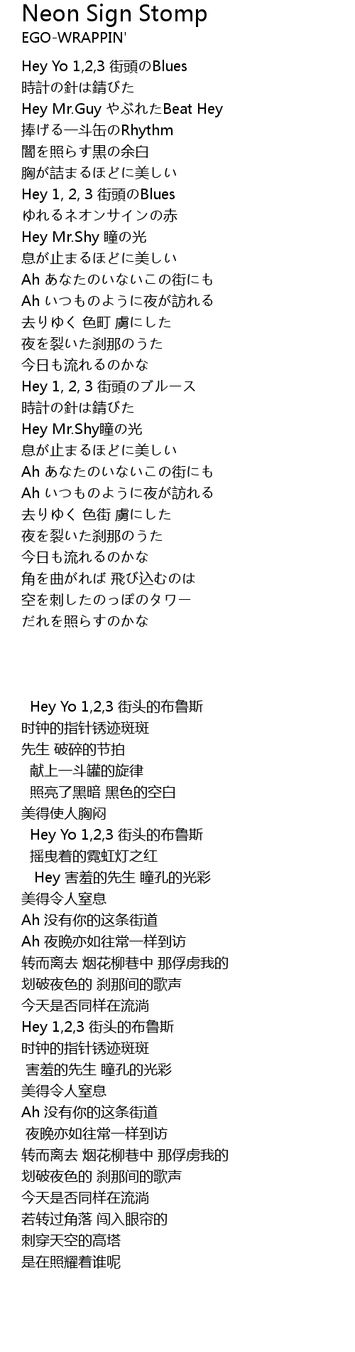| [00:37.38] | ゆれるネオンサインの赤 |