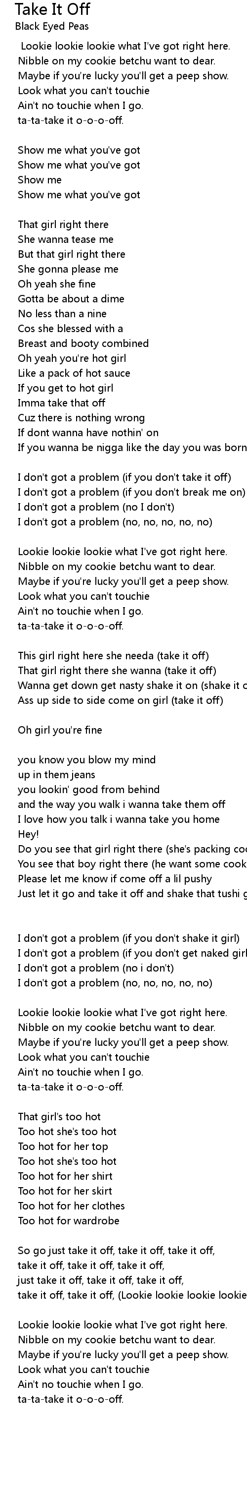 take it off, take it off, (Lookie lookie lookie lookie) |