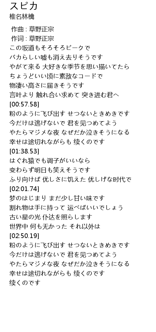 | [00:00.00] | 作曲 : 草野正宗 |