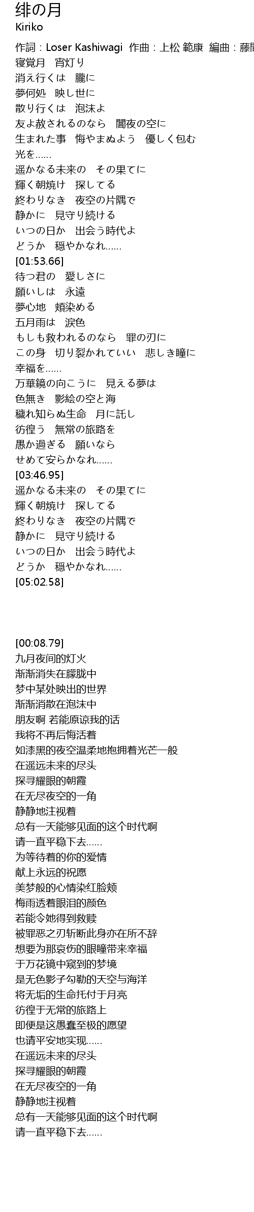 | [00:13.54] | 寝覚月 宵灯り |