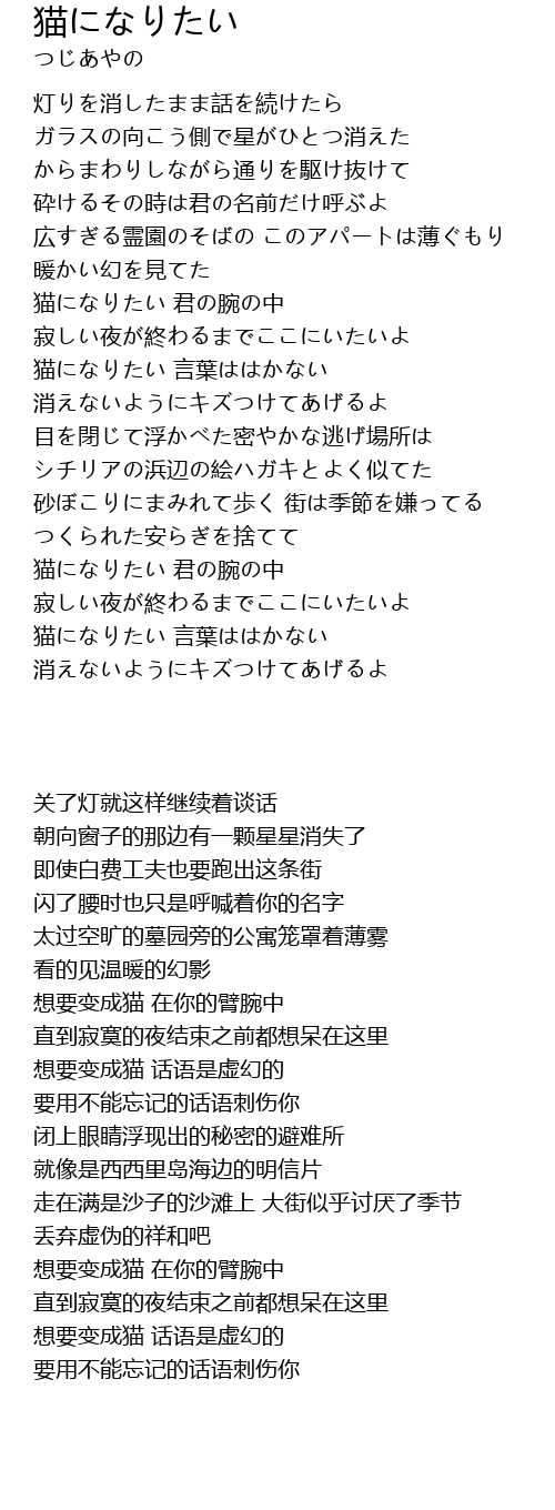 | [02:41.912] | 想要变成猫 话语是虚幻的 |