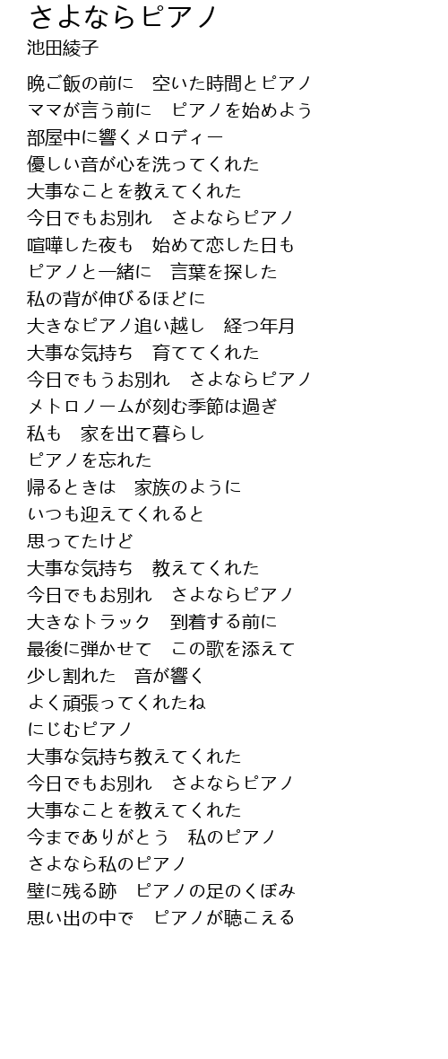 | [02:37.92] | 今日でもお別れ さよならピアノ |