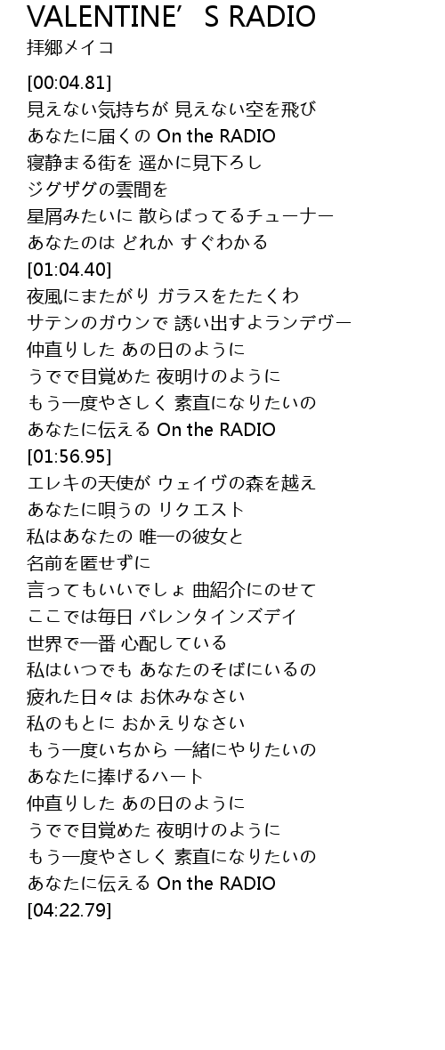 | [04:15.76] | あなたに伝える On the RADIO |