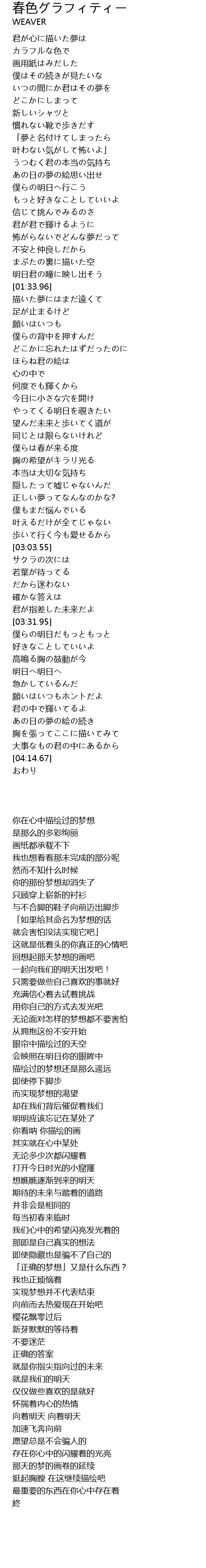 | [03:35.29] | 僕らの明日だもっともっと |