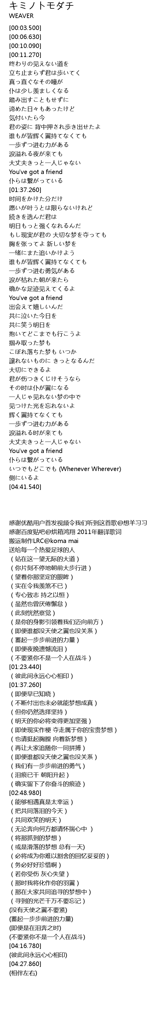 | [04:11.340] | 大丈夫きっと一人じゃない |