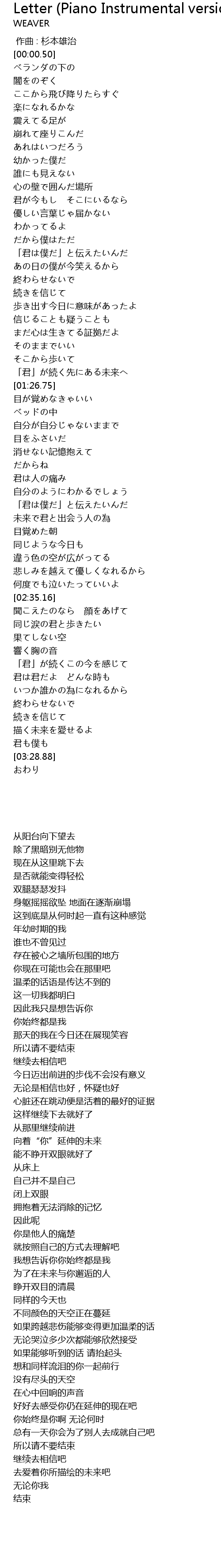 | [00:00.000] | 作曲 : 杉本雄治 |
