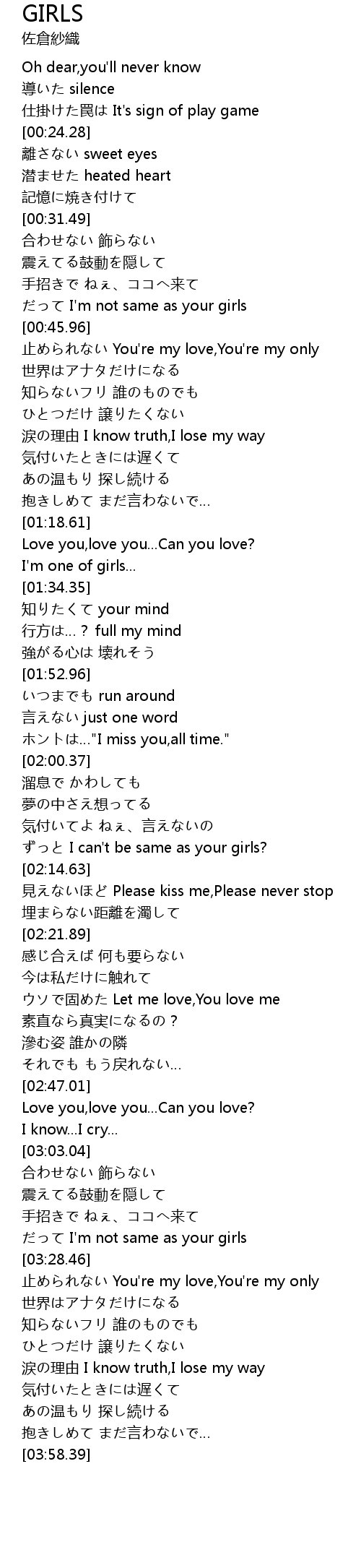 | [02:11.53] | ずっと I can't be same as your girls? |