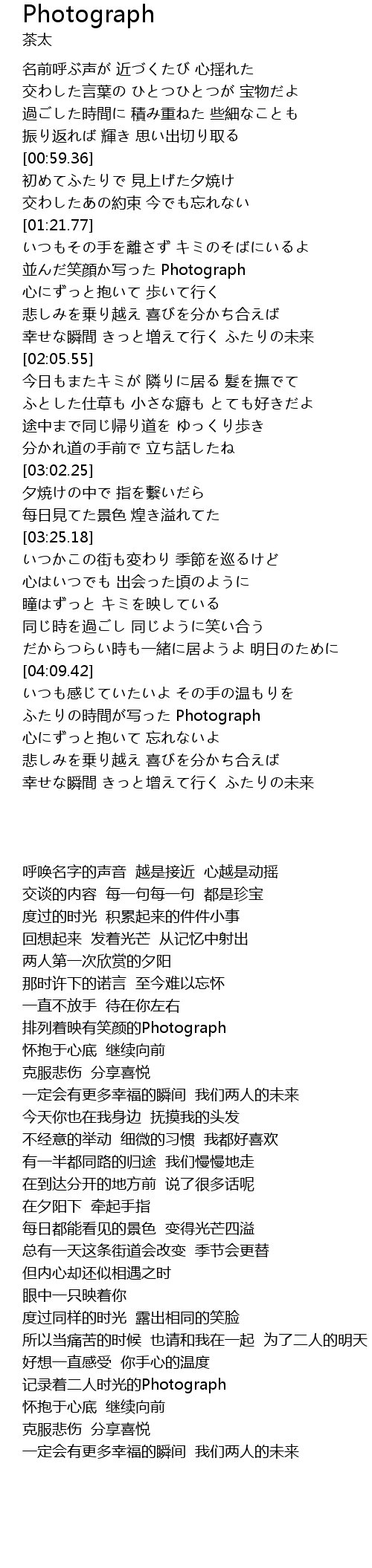 | [04:42.07] | ふたりの時間が写った Photograph |
