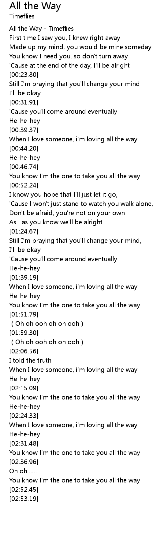 | [02:25.25] | When I love someone, i'm loving all the way |