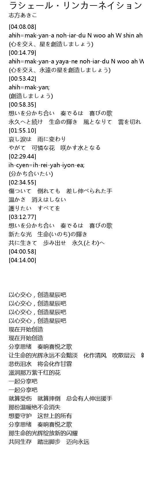 | [00:14.60] | (心を交え、星を創造しましょう) |